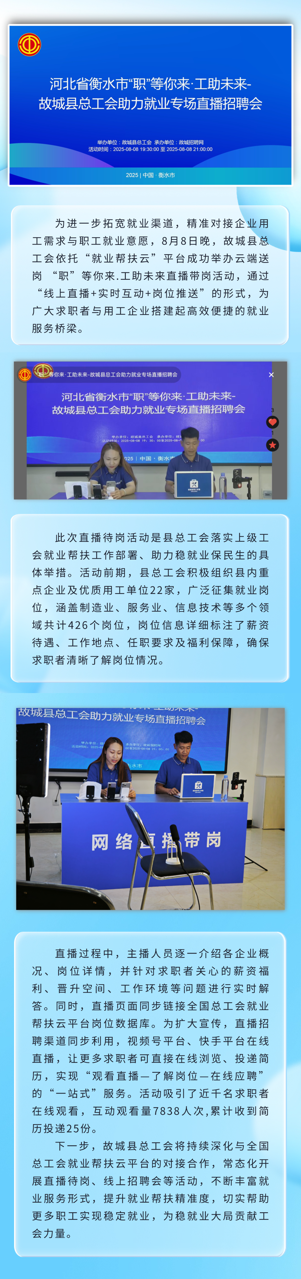 故城县总工会开展“职”等你来·工助未来直播带岗活动助力就业专场直播带岗招聘会搭建就业服务“云桥梁”